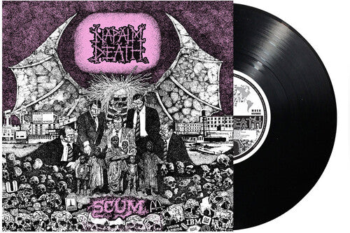 Limited pink colored vinyl LP pressing. Scum is the debut studio album by grindcore band Napalm Death, originally released in 1987. The two sides of the record were recorded by two different lineups in sessions separated by about a year; the only musician in both incarnations was drummer Mick Harris. The two sides are very different, and the two taken together serve to bridge stylistic elements of heavy metal and punk rock. While the songs on the A-side are influenced heavily by hardcore punk and anarcho-punk, the vocals and lower-tuned electric guitars on the B-side anticipate subsequent developments in extreme metal. Loudwire put it in the list of the best 10 metal albums of 1987.